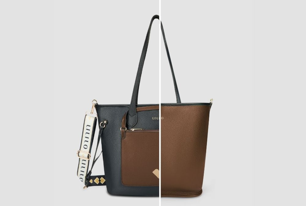 Why have one bag when you can have two? This reversible tote is designed for the woman who loves options, giving you the power to transform your look in seconds. Simply flip it inside out to reveal a fresh new style, perfect for switching up your vibe or matching any outfit. Roomy enough to fit your 15-inch laptop plus daily essentials, with a detachable "pochette" pouch featuring our signature Lililo Heart that transforms into a crossbody with the wide canvas strap. Don't settle for ordinary, this reversible tote is the ultimate blend of versatility, comfort, and style. One clever bag that delivers twice the style possibilities.